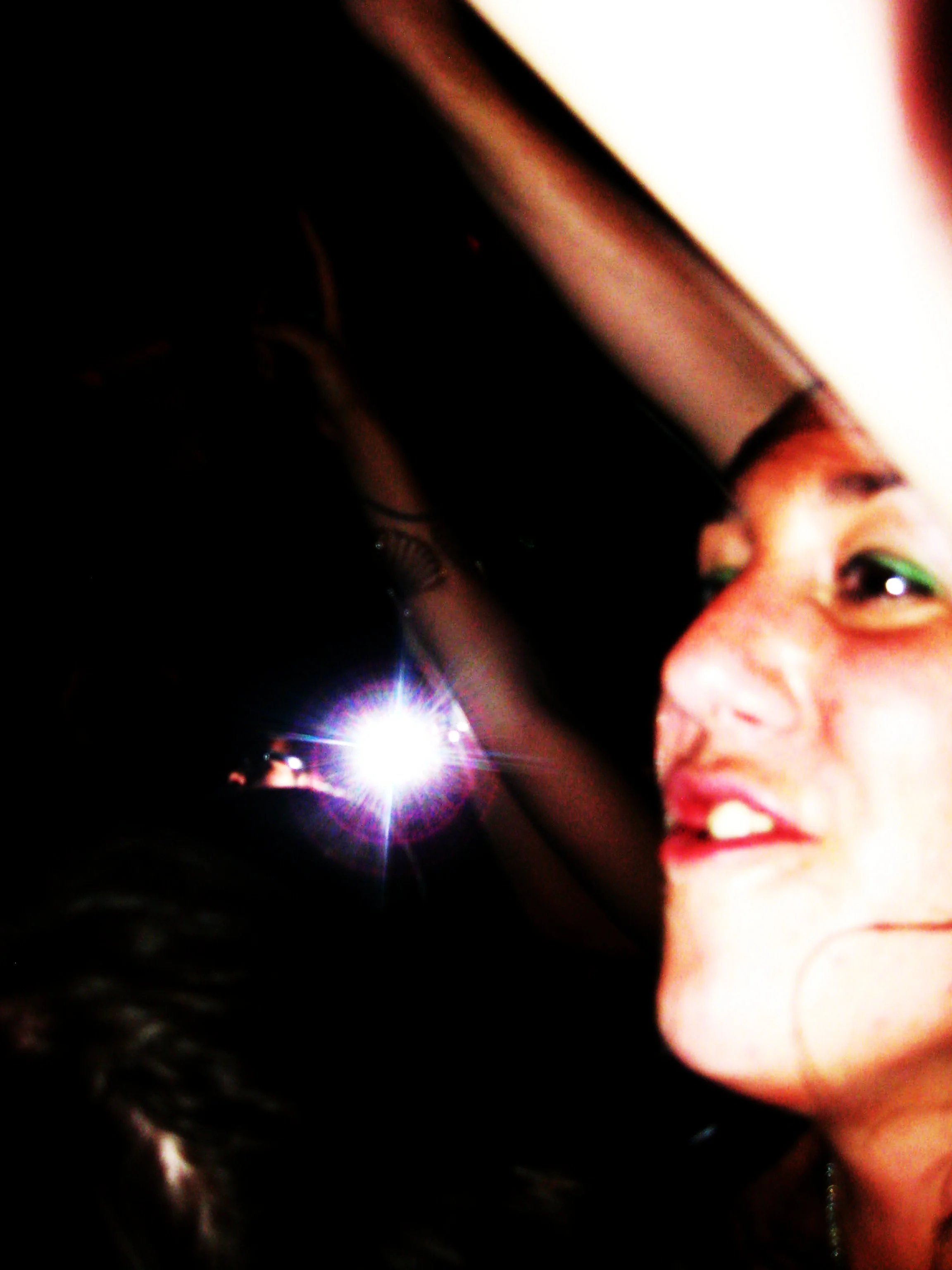 Tragedy struck when we got into the club: my camera broke. Out of fumbling desperation my "cool" act was kaput. What was I to do without my armor?! Your dad grabbed it from my hands, somehow fixed it, and took this photo of me. My hero! I was completely smitten.